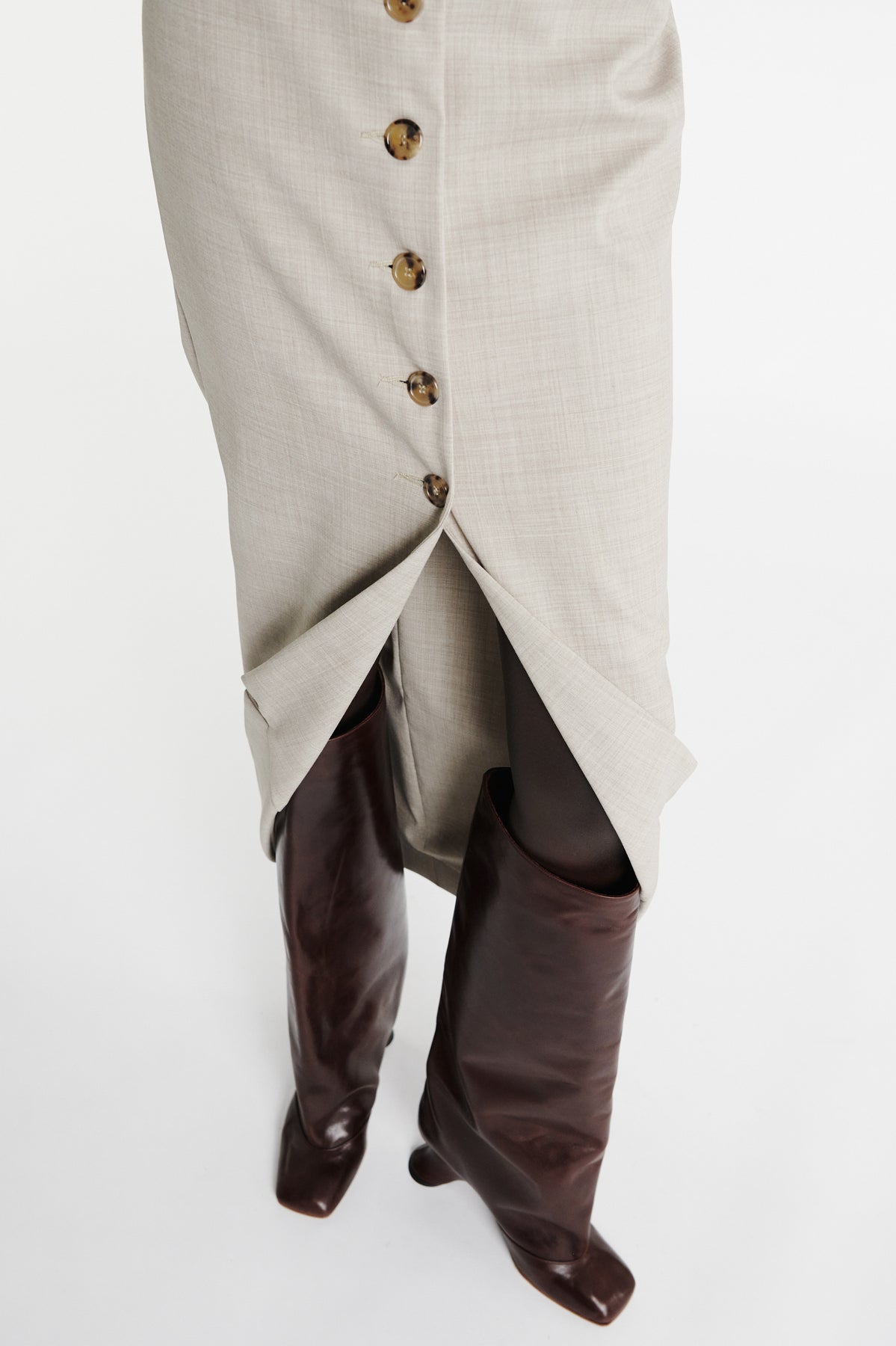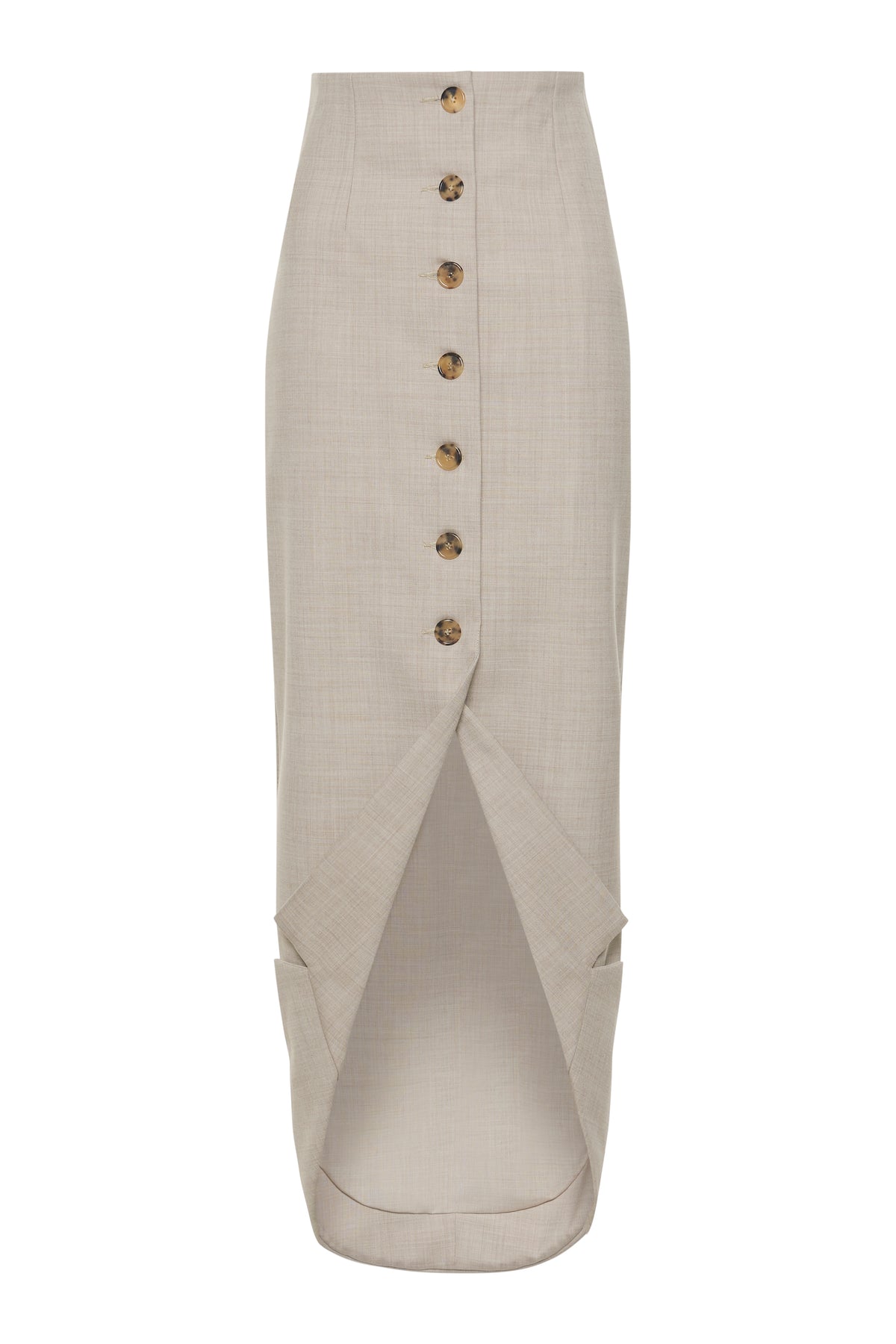 {"id":15432219033984,"title":"Tailored Skirt With Jacket Collar At Hem Beige Melange","handle":"tailored-skirt-with-jacket-collar-at-hem-beige-melange","description":"\u003carticle data-turn=\"assistant\" data-scroll-anchor=\"true\" data-testid=\"conversation-turn-10\" data-turn-id=\"b858916d-e08e-4f63-900e-821a98895600\" dir=\"auto\" class=\"text-token-text-primary w-full focus:outline-none [--shadow-height:45px] has-data-writing-block:pointer-events-none has-data-writing-block:-mt-(--shadow-height) has-data-writing-block:pt-(--shadow-height) [\u0026amp;:has([data-writing-block])\u0026gt;*]:pointer-events-auto [content-visibility:auto] supports-[content-visibility:auto]:[contain-intrinsic-size:auto_100lvh] scroll-mt-[calc(var(--header-height)+min(200px,max(70px,20svh)))]\" tabindex=\"-1\"\u003e\n\u003cdiv class=\"text-base my-auto mx-auto pb-10 [--thread-content-margin:--spacing(4)] thread-sm:[--thread-content-margin:--spacing(6)] thread-lg:[--thread-content-margin:--spacing(16)] px-(--thread-content-margin)\"\u003e\n\u003cdiv class=\"[--thread-content-max-width:40rem] thread-lg:[--thread-content-max-width:48rem] mx-auto max-w-(--thread-content-max-width) flex-1 group\/turn-messages focus-visible:outline-hidden relative flex w-full min-w-0 flex-col agent-turn\" tabindex=\"-1\"\u003e\n\u003cdiv class=\"flex max-w-full flex-col grow\"\u003e\n\u003cdiv data-message-model-slug=\"gpt-5-1\" class=\"min-h-8 text-message relative flex w-full flex-col items-end gap-2 text-start break-words whitespace-normal [.text-message+\u0026amp;]:mt-1\" dir=\"auto\" data-message-id=\"89f1a3bb-d928-4c7f-9be3-715c148e46c3\" data-message-author-role=\"assistant\"\u003e\n\u003cdiv class=\"flex w-full flex-col gap-1 empty:hidden first:pt-[1px]\"\u003e\n\u003cdiv class=\"markdown prose dark:prose-invert w-full break-words light markdown-new-styling\"\u003e\n\u003cp data-is-only-node=\"\" data-is-last-node=\"\" data-end=\"359\" data-start=\"99\"\u003eTailored in a clean, structured silhouette, this skirt features a buttoned front with no slits for a streamlined finish. A jacket-style collar placed at the hem introduces an unexpected architectural detail, creating a subtle trompe-l'œil effect. \u003c\/p\u003e\n\u003cp data-is-only-node=\"\" data-is-last-node=\"\" data-end=\"359\" data-start=\"99\"\u003eShown here with \u003ca href=\"https:\/\/awake-mode.com\/products\/tailored-bodysuit-with-shirt-collar-insert-beige-melange\"\u003eTailored Bodysuit With Shirt Collar Insert Beige Melange\u003c\/a\u003e and\u003cspan\u003e \u003c\/span\u003e\u003ca href=\"https:\/\/awake-mode.com\/products\/christy-boot-brown\"\u003eChristy Boot Brown\u003c\/a\u003e.\u003c\/p\u003e\n\u003cp data-is-only-node=\"\" data-is-last-node=\"\" data-end=\"359\" data-start=\"99\"\u003eAvailable in \u003ca href=\"https:\/\/awake-mode.com\/products\/tailored-skirt-with-jacket-collar-at-hem-grey-melange\"\u003egrey melange\u003c\/a\u003e.\u003cbr\u003e\u003cbr\u003e\u003c\/p\u003e\n\u003c\/div\u003e\n\u003c\/div\u003e\n\u003c\/div\u003e\n\u003c\/div\u003e\n\u003c\/div\u003e\n\u003c\/div\u003e\n\u003c\/article\u003e\n\u003cp\u003e\u003cstrong\u003eFIT \u0026amp; SIZE\u003c\/strong\u003e\u003cstrong style=\"font-size: 0.875rem;\"\u003e\u003c\/strong\u003e\u003c\/p\u003e\n\u003cul\u003e\n\u003cli\u003eDesigned with a high waist and slim fit.\u003cbr\u003e\n\u003c\/li\u003e\n\u003cli\u003e\u003cspan\u003eTrue to size, we recommend choosing your regular size.\u003c\/span\u003e\u003c\/li\u003e\n\u003cli\u003e\n\u003cspan\u003e\u003cspan class=\"selectable-text copyable-text xkrh14z\"\u003eModel is 181 cm \/ 5'11\" (bust: 74 cm \/ 29”, waist: 61 cm \/ 24”, hips: 87 cm \/ 34½”)\u003cbr\u003eand is wearing a size FR 34.\u003c\/span\u003e\u003c\/span\u003e\u003cbr\u003e\n\u003c\/li\u003e\n\u003c\/ul\u003e\n\u003cp\u003e\u003cstrong\u003ePRODUCT DETAILS\u003c\/strong\u003e\u003c\/p\u003e\n\u003cul\u003e\n\u003cli\u003e55% Polyester 43% Wool 2% Elastane \u003c\/li\u003e\n\u003cli\u003eMidweight material.\u003c\/li\u003e\n\u003cli\u003eButton closure.\u003c\/li\u003e\n\u003cli\u003eUnlined.\u003cbr\u003e\n\u003c\/li\u003e\n\u003cli\u003e\u003cspan\u003eDry clean. \u003c\/span\u003e\u003c\/li\u003e\n\u003cli\u003e\n\u003cdiv class=\"text-base my-auto mx-auto py-5 [--thread-content-margin:--spacing(4)] @[37rem]:[--thread-content-margin:--spacing(6)] @[70rem]:[--thread-content-margin:--spacing(12)] px-(--thread-content-margin)\"\u003e\n\u003cdiv class=\"[--thread-content-max-width:32rem] @[34rem]:[--thread-content-max-width:40rem] @[64rem]:[--thread-content-max-width:48rem] mx-auto flex max-w-(--thread-content-max-width) flex-1 text-base gap-4 md:gap-5 lg:gap-6 group\/turn-messages focus-visible:outline-hidden\" tabindex=\"-1\"\u003e\n\u003cdiv class=\"group\/conversation-turn relative flex w-full min-w-0 flex-col\"\u003e\n\u003cdiv class=\"relative flex-col gap-1 md:gap-3\"\u003e\u003cspan\u003eMade in Lithuania.\u003cbr\u003e\u003cbr\u003e\u003cbr\u003e\u003c\/span\u003e\u003c\/div\u003e\n\u003c\/div\u003e\n\u003c\/div\u003e\n\u003c\/div\u003e\n\u003c\/li\u003e\n\u003c\/ul\u003e","published_at":"2025-12-12T16:58:25+00:00","created_at":"2025-11-13T10:24:54+00:00","vendor":"A.W.A.K.E. MODE","type":"Skirts","tags":["New in","PSS26","Push2025","Push2025Dec","RTW","Shop All","Skirts"],"price":69500,"price_min":69500,"price_max":69500,"available":true,"price_varies":false,"compare_at_price":null,"compare_at_price_min":0,"compare_at_price_max":0,"compare_at_price_varies":false,"variants":[{"id":56874448978304,"title":"FR 34 \/ Beige Melange","option1":"FR 34","option2":"Beige Melange","option3":null,"sku":"5056379264463","requires_shipping":true,"taxable":true,"featured_image":null,"available":true,"name":"Tailored Skirt With Jacket Collar At Hem Beige Melange - FR 34 \/ Beige Melange","public_title":"FR 34 \/ Beige Melange","options":["FR 34","Beige Melange"],"price":69500,"weight":0,"compare_at_price":null,"inventory_management":"shopify","barcode":"50563792