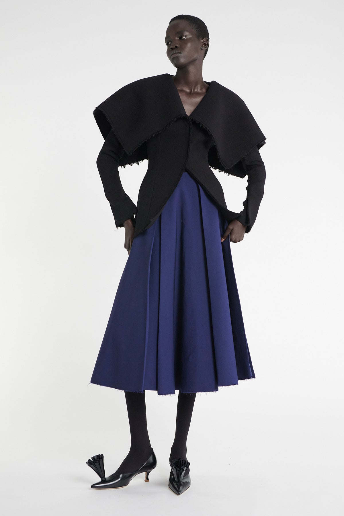 {"id":15318429237632,"title":"Fitted Jacket Black","handle":"fitted-jacket-black","description":"\u003cp\u003eCrafted from pure wool, this blazer sets an oversized collar against a fitted body to create controlled volume. Raw-edge detailing adds a measured contrast to its tailored lines, while the V-neck fastening completes the piece with a clean, understated finish.\u003c\/p\u003e\n\u003cp\u003eShown with Pleated Skirt Navy and \u003ca href=\"https:\/\/awake-mode.com\/products\/anki-ankle-boot-multicolour\"\u003eAnki Ankle Boot Multicolour\u003c\/a\u003e.\u003c\/p\u003e\n\u003cp\u003eAvailable in ecru.\u003c\/p\u003e\n\u003cp\u003e\u003cstrong\u003eFIT \u0026amp; SIZE\u003c\/strong\u003e\u003cstrong style=\"font-size: 0.875rem;\"\u003e\u003c\/strong\u003e\u003c\/p\u003e\n\u003cul\u003e\n\u003cli\u003eDesigned with a slim fit.\u003cbr\u003e\n\u003c\/li\u003e\n\u003cli\u003e\u003cspan\u003eTrue to size, we recommend choosing your regular size. If between sizes, please size up.\u003c\/span\u003e\u003c\/li\u003e\n\u003cli\u003e\u003cspan\u003e\u003cspan class=\"selectable-text copyable-text xkrh14z\"\u003eModel is 181 cm \/ 5'11\" (bust: 74 cm \/ 29”, waist: 61 cm \/ 24”, hips: 87 cm \/ 34½”)\u003cbr\u003eand is wearing a size FR 36. Lookbook model is 176 cm \/ 5'9\" (bust: 77 cm \/ 30”, waist: 59 cm \/ 23”, hips: 86 cm \/ 34”) and is wearing a size FR 36.\u003c\/span\u003e\u003c\/span\u003e\u003c\/li\u003e\n\u003c\/ul\u003e\n\u003cp\u003e\u003cstrong\u003ePRODUCT DETAILS\u003c\/strong\u003e\u003c\/p\u003e\n\u003cul\u003e\n\u003cli\u003e100% Wool \u003c\/li\u003e\n\u003cli\u003eHeavyweigh material.\u003c\/li\u003e\n\u003cli\u003ePress studs.\u003c\/li\u003e\n\u003cli\u003eUnlined.\u003c\/li\u003e\n\u003cli\u003e\u003cspan\u003eDry clean. \u003c\/span\u003e\u003c\/li\u003e\n\u003cli\u003e\n\u003cdiv class=\"text-base my-auto mx-auto py-5 [--thread-content-margin:--spacing(4)] @[37rem]:[--thread-content-margin:--spacing(6)] @[70rem]:[--thread-content-margin:--spacing(12)] px-(--thread-content-margin)\"\u003e\n\u003cdiv class=\"[--thread-content-max-width:32rem] @[34rem]:[--thread-content-max-width:40rem] @[64rem]:[--thread-content-max-width:48rem] mx-auto flex max-w-(--thread-content-max-width) flex-1 text-base gap-4 md:gap-5 lg:gap-6 group\/turn-messages focus-visible:outline-hidden\" tabindex=\"-1\"\u003e\n\u003cdiv class=\"group\/conversation-turn relative flex w-full min-w-0 flex-col\"\u003e\n\u003cdiv class=\"relative flex-col gap-1 md:gap-3\"\u003e\n\u003cspan\u003eMade in Lithuania.\u003cbr\u003e\u003c\/span\u003e\u003cbr\u003e\u003cbr\u003e\n\u003c\/div\u003e\n\u003c\/div\u003e\n\u003c\/div\u003e\n\u003c\/div\u003e\n\u003c\/li\u003e\n\u003c\/ul\u003e","published_at":"2025-11-14T16:23:46+00:00","created_at":"2025-09-02T15:36:26+01:00","vendor":"A.W.A.K.E. MODE","type":"Coats \u0026 Jackets","tags":["AW25","Jackets","New in","Push2025","RTW","Shop All"],"price":413256,"price_min":413256,"price_max":413256,"available":true,"price_varies":false,"compare_at_price":null,"compare_at_price_min":0,"compare_at_price_max":0,"compare_at_price_varies":false,"variants":[{"id":56495906783616,"title":"34 \/ Black","option1":"34","option2":"Black","option3":null,"sku":"5056379232295","requires_shipping":true,"taxable":true,"featured_image":null,"available":true,"name":"Fitted Jacket Black - 34 \/ Black","public_title":"34 \/ Black","options":["34","Black"],"price":413256,"weight":0,"compare_at_price":null,"inventory_management":"shopify","barcode":"5056379232295","requires_selling_plan":false,"selling_plan_allocations":[]},{"id":56495906816384,"title":"36 \/ Black","option1":"36","option2":"Black","option3":null,"sku":"5056379232301","requires_shipping":true,"taxable":true,"featured_image":null,"available":true,"name":"Fitted Jacket Black - 36 \/ Black","public_title":"36 \/ Black","options":["36","Black"],"price":413256,"weight":0,"compare_at_price":null,"inventory_management":"shopify","barcode":"5056379232301","requires_selling_plan":false,"selling_plan_allocations":[]},{"id":56495906849152,"title":"38 \/ Black","option1":"38","option2":"Black","option3":null,"sku":"5056379232318","requires_shipping":true,"taxable":true,"featured_image":null,"available":true,"name":"Fitted Jacket Black - 38 \/ Black","public_title":"38 \/ Black","options":["38","Black"],"price":413256,"weight":0,"compare_at_price":null,"inventory_management":"shopify","barcode":"5056379232318","requires_selling_plan":false,"selling_plan_allocations":[]},{"id":56495906881920,"title":"40 \/ Black","option1":"40","option2":"Black","option3":null,"sku":"5056379232325","requires_shipping":true,"taxable":true,"featured_image":null,"available":true,"name":"Fitted Jacket Black - 40 \/ Black","public_title":"40 \/ Black","options":["40","Black"],"price":413256,"weight":0,"compare_at_price":null,"inventory_management":"shopify","barcode":"5056379232325","requires_selling_plan":false,"selling_plan_allocations":[]},{"id":56495906914688,"title":"42 \/ Black","option1":"42","option2":"Black","option3":null,"sku":"5056379232332","requires_shipping":true,"taxable":true,"featured_image":null,"available":true,"name":"Fitted Jacket Black - 42 \/ Black","public_title":"42 \/ Black","options":["42","Black"],"price":413256,"weight":0,"compare_at_price":null,"inventory_management":"shopify","barcode":"5056379232332","requires_selling_plan":false,"selling_plan_allocations":[]},{"id":56495906947456,"title":"44 \/ Black","option1":"44","option2":"Black","option3":null,"sku":"5056379232349","requires_shipping":true,"taxable":true,"featured_image":null,"available":true,"name":"Fitted Jacket Black - 44 \/ Black","public_title":"44 \/ Black","options":["44","Black"],"price":413256,"weight":0,"compare_at_price":null,"inventory_management":"shopify","barcode":"5056379232349","requires_selling_plan":false,"selling_plan_allocations":[]},{"id":56495906980224,"title":"46 \/ Black","option1":"46","option2":"Black","option3":null,"sku":"5056379232356","req
