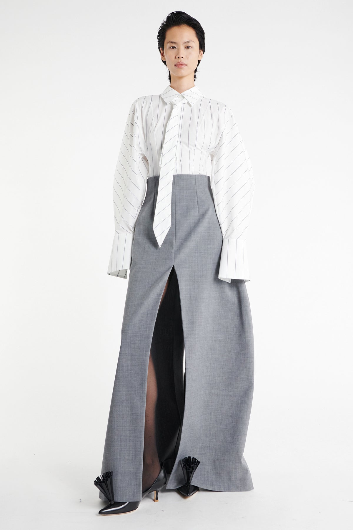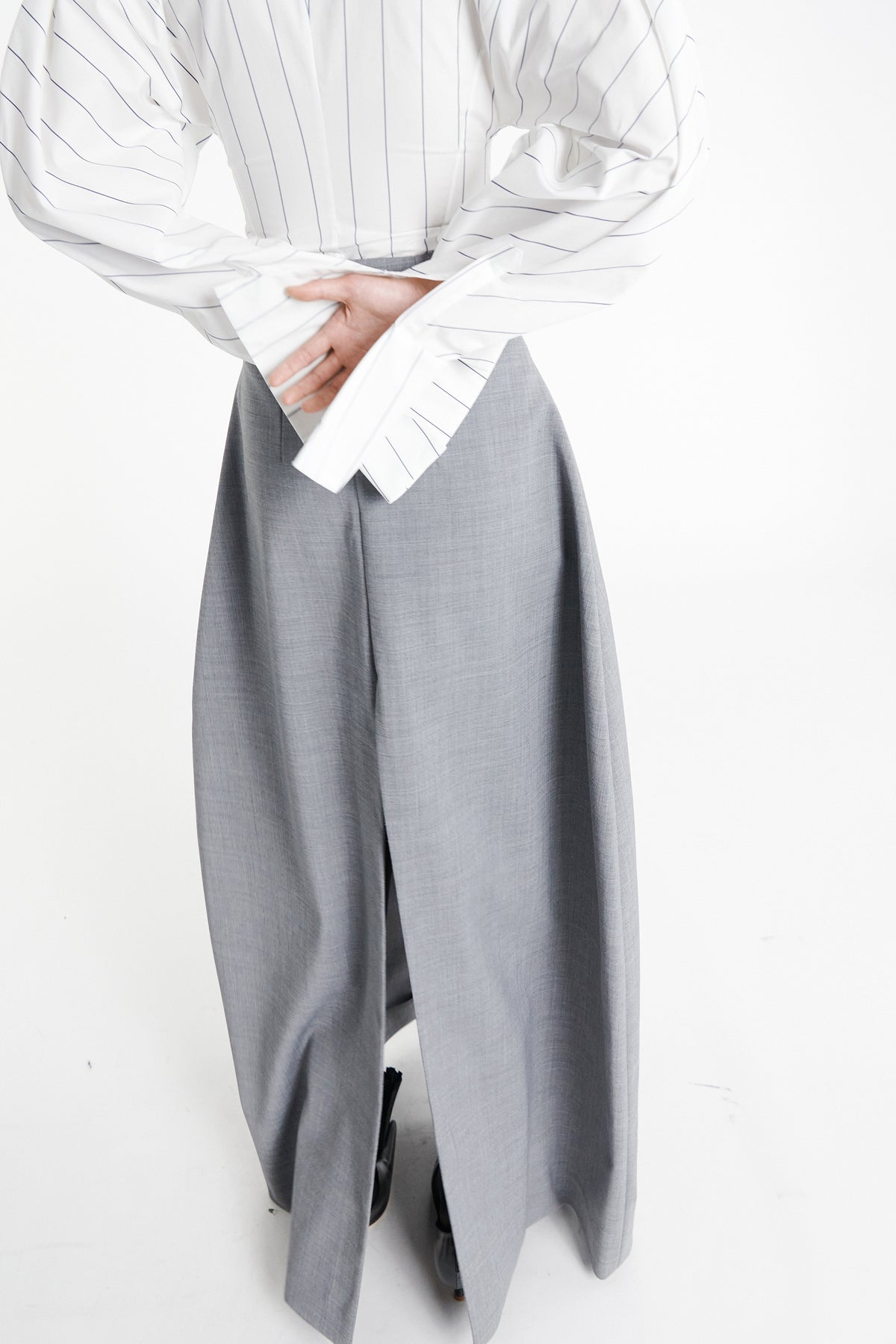 {"id":15318430286208,"title":"Pant Skirt Grey Melange","handle":"pant-skirt-grey-melange","description":"\u003carticle class=\"text-token-text-primary w-full focus:outline-none [--shadow-height:45px] has-data-writing-block:pointer-events-none has-data-writing-block:-mt-(--shadow-height) has-data-writing-block:pt-(--shadow-height) [\u0026amp;:has([data-writing-block])\u0026gt;*]:pointer-events-auto [content-visibility:auto] supports-[content-visibility:auto]:[contain-intrinsic-size:auto_100lvh] scroll-mt-[calc(var(--header-height)+min(200px,max(70px,20svh)))]\" dir=\"auto\" data-turn-id=\"request-67238fee-39fc-8007-875d-8fe621740959-4\" data-testid=\"conversation-turn-584\" data-scroll-anchor=\"true\" data-turn=\"assistant\" tabindex=\"-1\"\u003e\n\u003cdiv class=\"text-base my-auto mx-auto pb-10 [--thread-content-margin:--spacing(4)] thread-sm:[--thread-content-margin:--spacing(6)] thread-lg:[--thread-content-margin:--spacing(16)] px-(--thread-content-margin)\"\u003e\n\u003cdiv class=\"[--thread-content-max-width:40rem] thread-lg:[--thread-content-max-width:48rem] mx-auto max-w-(--thread-content-max-width) flex-1 group\/turn-messages focus-visible:outline-hidden relative flex w-full min-w-0 flex-col agent-turn\" tabindex=\"-1\"\u003e\n\u003cdiv class=\"flex max-w-full flex-col grow\"\u003e\n\u003cdiv data-message-author-role=\"assistant\" data-message-id=\"ecb1c8db-36e6-4bc1-8a30-a3b7f89ac216\" dir=\"auto\" class=\"min-h-8 text-message relative flex w-full flex-col items-end gap-2 text-start break-words whitespace-normal [.text-message+\u0026amp;]:mt-1\" data-message-model-slug=\"gpt-5\"\u003e\n\u003cdiv class=\"flex w-full flex-col gap-1 empty:hidden first:pt-[1px]\"\u003e\n\u003cdiv class=\"markdown prose dark:prose-invert w-full break-words light markdown-new-styling\"\u003e\n\u003cp data-start=\"47\" data-end=\"290\"\u003eCrafted in a wool-blend suiting fabric, this maxi skirt mimics tailored trousers with a fitted waist, darts and side slip pockets. Front and back splits introduce movement, while the concealed zip at the back maintains clean lines.\u003c\/p\u003e\n\u003carticle data-turn=\"assistant\" data-scroll-anchor=\"true\" data-testid=\"conversation-turn-582\" data-turn-id=\"request-67238fee-39fc-8007-875d-8fe621740959-3\" dir=\"auto\" class=\"text-token-text-primary w-full focus:outline-none [--shadow-height:45px] has-data-writing-block:pointer-events-none has-data-writing-block:-mt-(--shadow-height) has-data-writing-block:pt-(--shadow-height) [\u0026amp;:has([data-writing-block])\u0026gt;*]:pointer-events-auto [content-visibility:auto] supports-[content-visibility:auto]:[contain-intrinsic-size:auto_100lvh] scroll-mt-[calc(var(--header-height)+min(200px,max(70px,20svh)))]\" tabindex=\"-1\"\u003e\n\u003cdiv class=\"text-base my-auto mx-auto pb-10 [--thread-content-margin:--spacing(4)] thread-sm:[--thread-content-margin:--spacing(6)] thread-lg:[--thread-content-margin:--spacing(16)] px-(--thread-content-margin)\"\u003e\n\u003cdiv class=\"[--thread-content-max-width:40rem] thread-lg:[--thread-content-max-width:48rem] mx-auto max-w-(--thread-content-max-width) flex-1 group\/turn-messages focus-visible:outline-hidden relative flex w-full min-w-0 flex-col agent-turn\" tabindex=\"-1\"\u003e\n\u003cdiv class=\"flex max-w-full flex-col grow\"\u003e\n\u003cdiv data-message-model-slug=\"gpt-5\" class=\"min-h-8 text-message relative flex w-full flex-col items-end gap-2 text-start break-words whitespace-normal [.text-message+\u0026amp;]:mt-1\" dir=\"auto\" data-message-id=\"816b7a76-c9d1-49a4-b6cf-aa8ca1aa199a\" data-message-author-role=\"assistant\"\u003e\n\u003cdiv class=\"flex w-full flex-col gap-1 empty:hidden first:pt-[1px]\"\u003e\n\u003cdiv class=\"markdown prose dark:prose-invert w-full break-words light markdown-new-styling\"\u003e\n\u003cp data-is-only-node=\"\" data-is-last-node=\"\" data-end=\"386\" data-start=\"0\"\u003eShown here with \u003ca href=\"https:\/\/awake-mode.com\/collections\/shirts-and-tops\/products\/puff-sleeve-shirt-white-stripe\"\u003ePuff Sleeve Shirt White Stripe\u003c\/a\u003e and \u003ca href=\"https:\/\/awake-mode.com\/products\/lea-black\"\u003eLea Black\u003c\/a\u003e. Also shown with \u003ca href=\"https:\/\/awake-mode.com\/products\/cropped-jacket-with-insert-grey\"\u003eCropped Jacket With Insert Grey\u003c\/a\u003e.\u003c\/p\u003e\n\u003cp data-is-only-node=\"\" data-is-last-node=\"\" data-end=\"386\" data-start=\"0\"\u003e\u003cstrong\u003eFIT \u0026amp; SIZE\u003cbr\u003e\u003cbr\u003e\u003c\/strong\u003e\u003cstrong style=\"font-size: 0.875rem;\"\u003e\u003c\/strong\u003e\u003c\/p\u003e\n\u003c\/div\u003e\n\u003c\/div\u003e\n\u003c\/div\u003e\n\u003c\/div\u003e\n\u003c\/div\u003e\n\u003c\/div\u003e\n\u003c\/article\u003e\n\u003cul\u003e\n\u003cli\u003eDesigned with an oversized fit through the legs.\u003cbr\u003e\n\u003c\/li\u003e\n\u003cli\u003e\u003cspan\u003eTrue to size, we recommend choosing your regular size.\u003c\/span\u003e\u003c\/li\u003e\n\u003cli\u003e\n\u003cspan\u003eModel is \u003cspan class=\"selectable-text copyable-text xkrh14z\"\u003e177 cm \/ 5'9\" (bust: 75 cm \/ 29”, waist: 60 cm \/ 23”, hips: 88 cm \/ 34”) and is wearing a size FR 36. Lookbook m\u003c\/span\u003eodel is 176 cm \/ 5'9\" (bust: 77 cm \/ 30”, waist: 59 cm \/ 23”, hips: 86 cm \/ 34”) and is wearing a size FR 36.\u003c\/span\u003e\u003cspan\u003e\u003c\/span\u003e\n\u003c\/li\u003e\n\u003c\/ul\u003e\n\u003cp\u003e\u003cstrong\u003ePRODUCT DETAILS\u003c\/strong\u003e\u003c\/p\u003e\n\u003cul\u003e\n\u003cli\u003e55% Polyester 43% Lana 2% Elastan\u003c\/li\u003e\n\u003cli\u003eHeavyweight material.\u003c\/li\u003e\n\u003cli\u003eInvisible zip at the back.\u003cbr\u003e\n\u003c\/li\u003e\n\u003cli\u003eLined.\u003c\/li\u003e\n\u003cli\u003e\u003cspan\u003eDry clean. \u003c\/span\u003e\u003c\/li\u003e\n\u003cli\u003e\n\u003cdiv class=\"text-base my-auto mx-auto py-5 [--thread-content-margin:--spacing(4)] @[37rem]:[--thread-content-margin:--spacing(6)] 