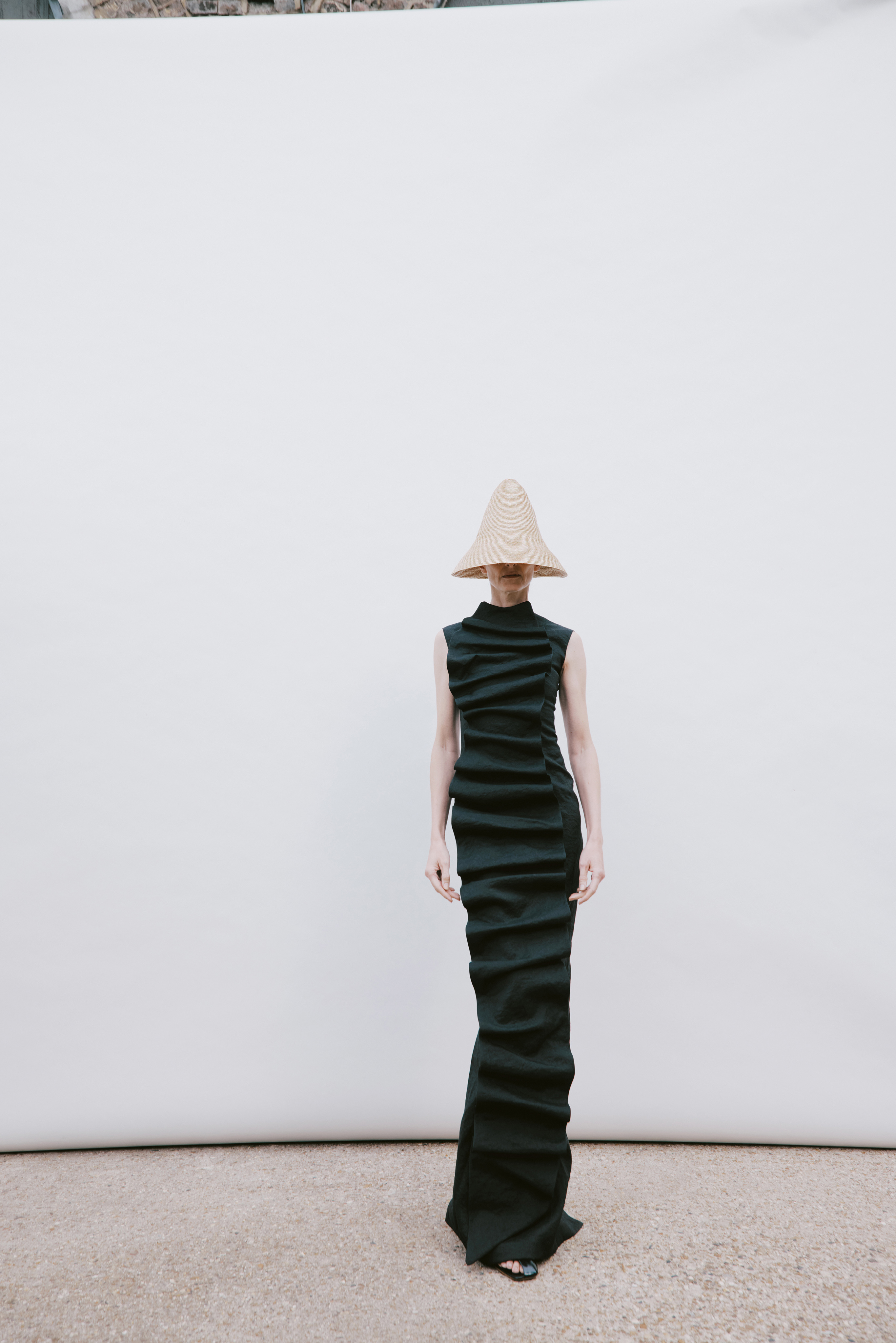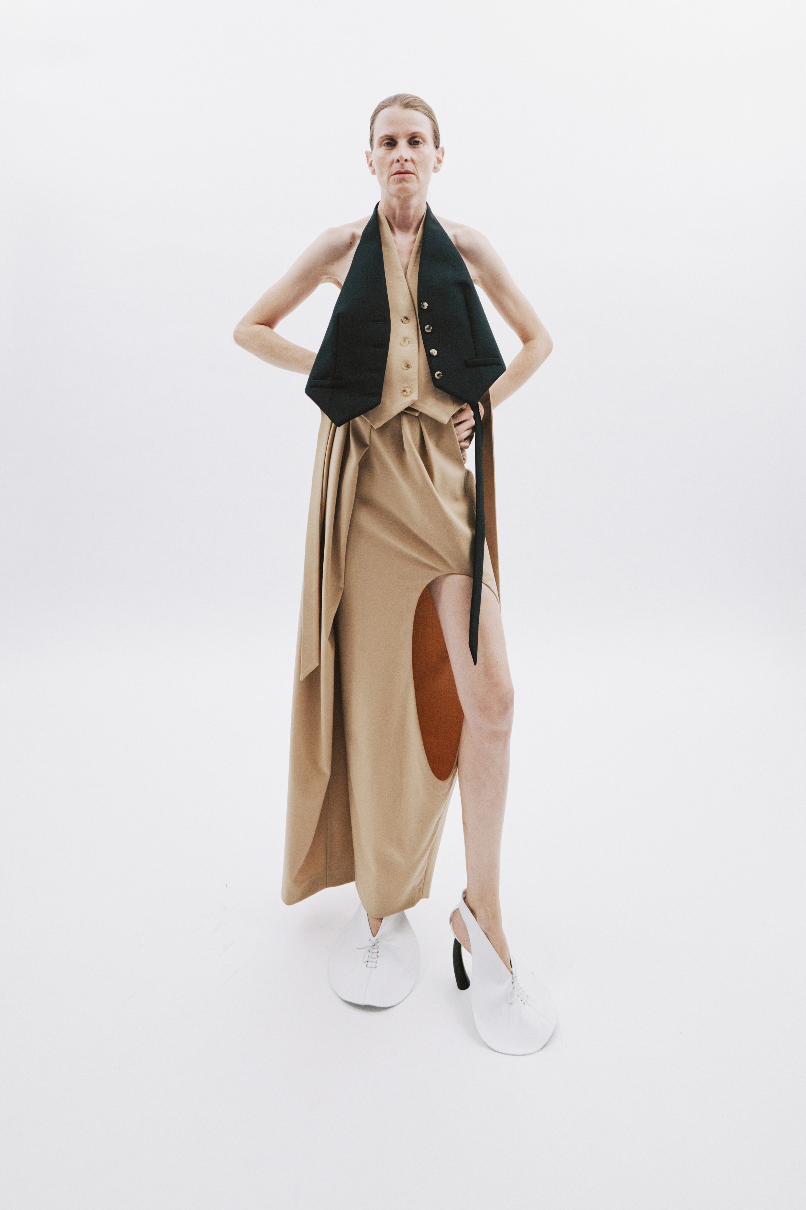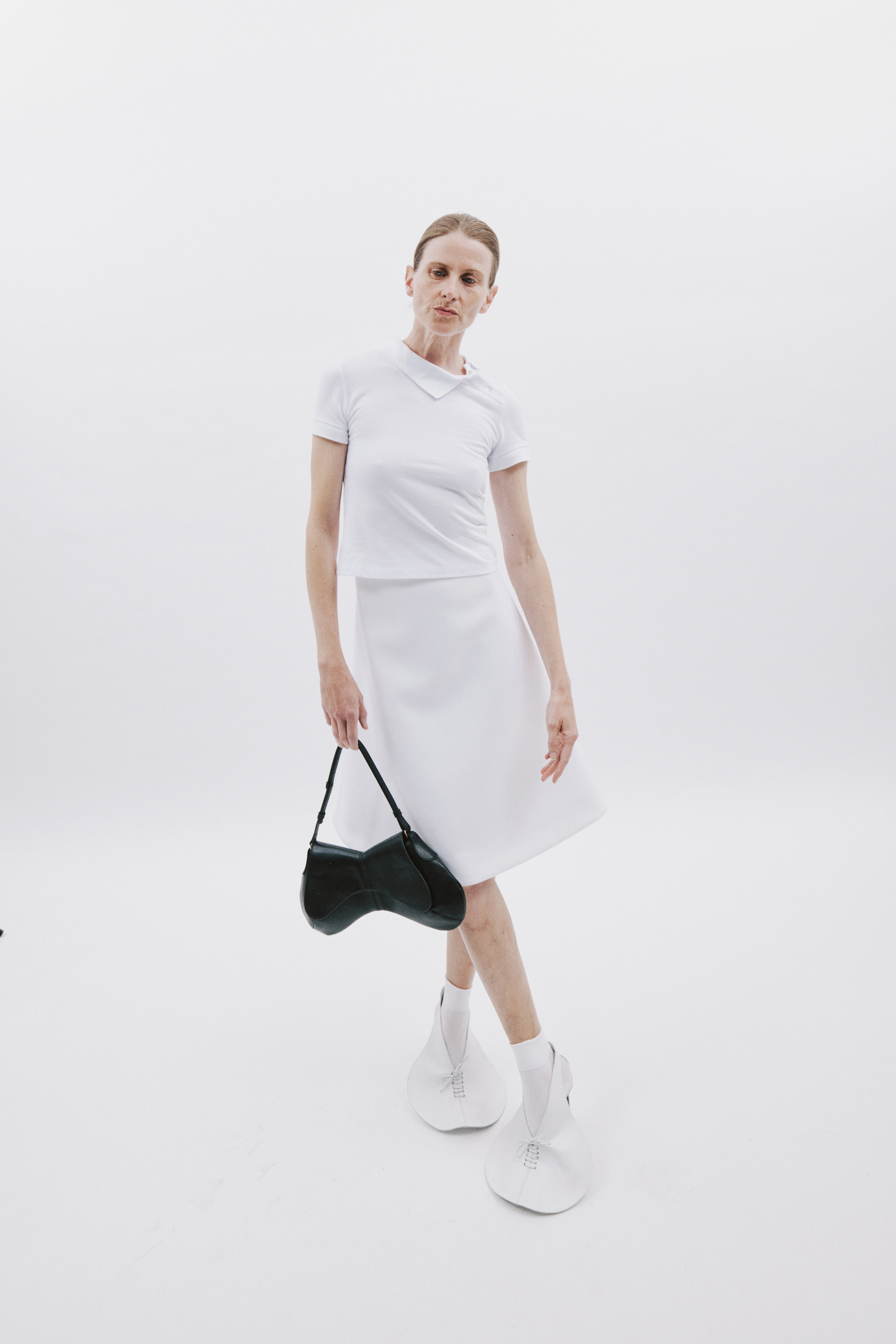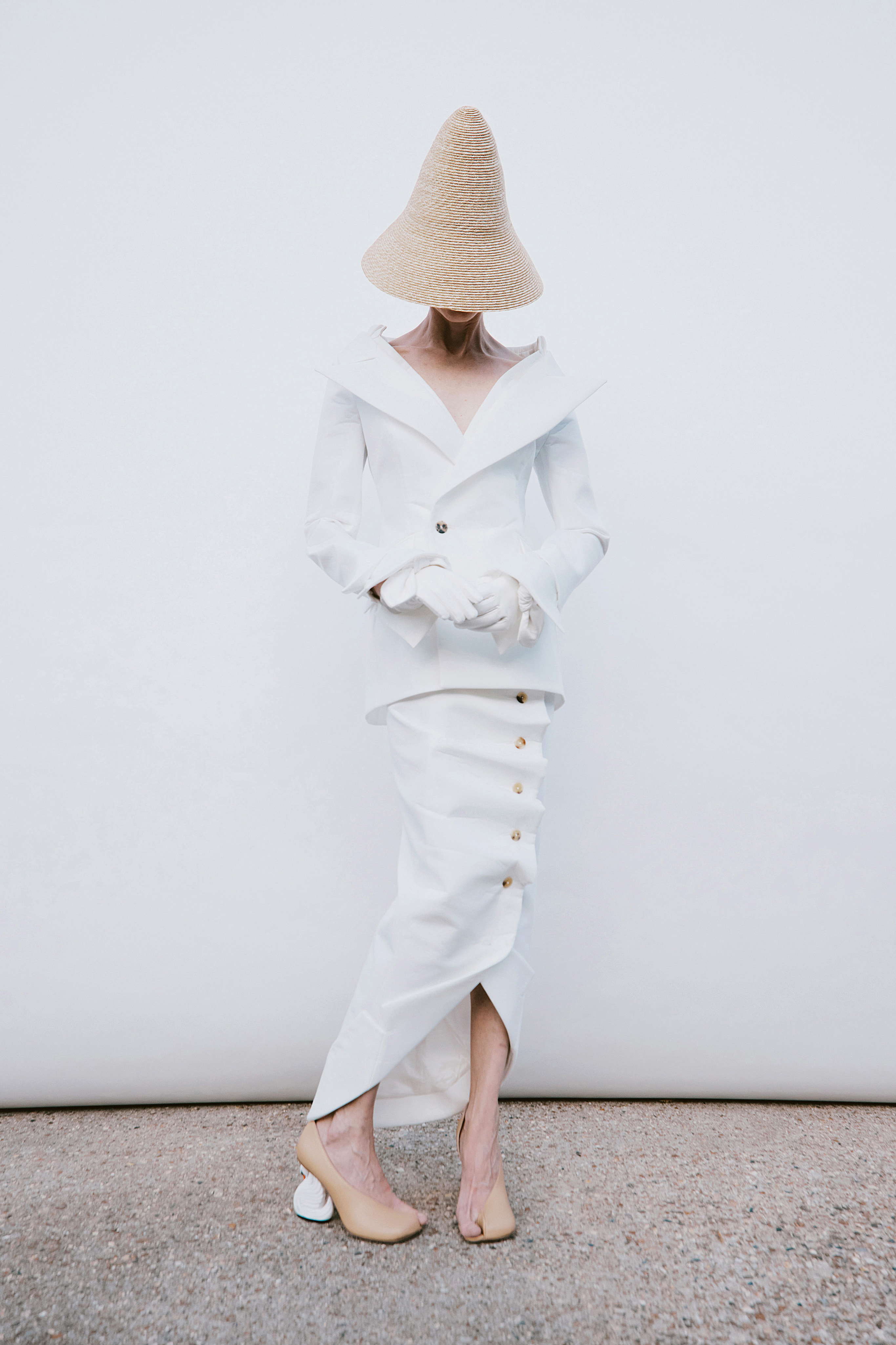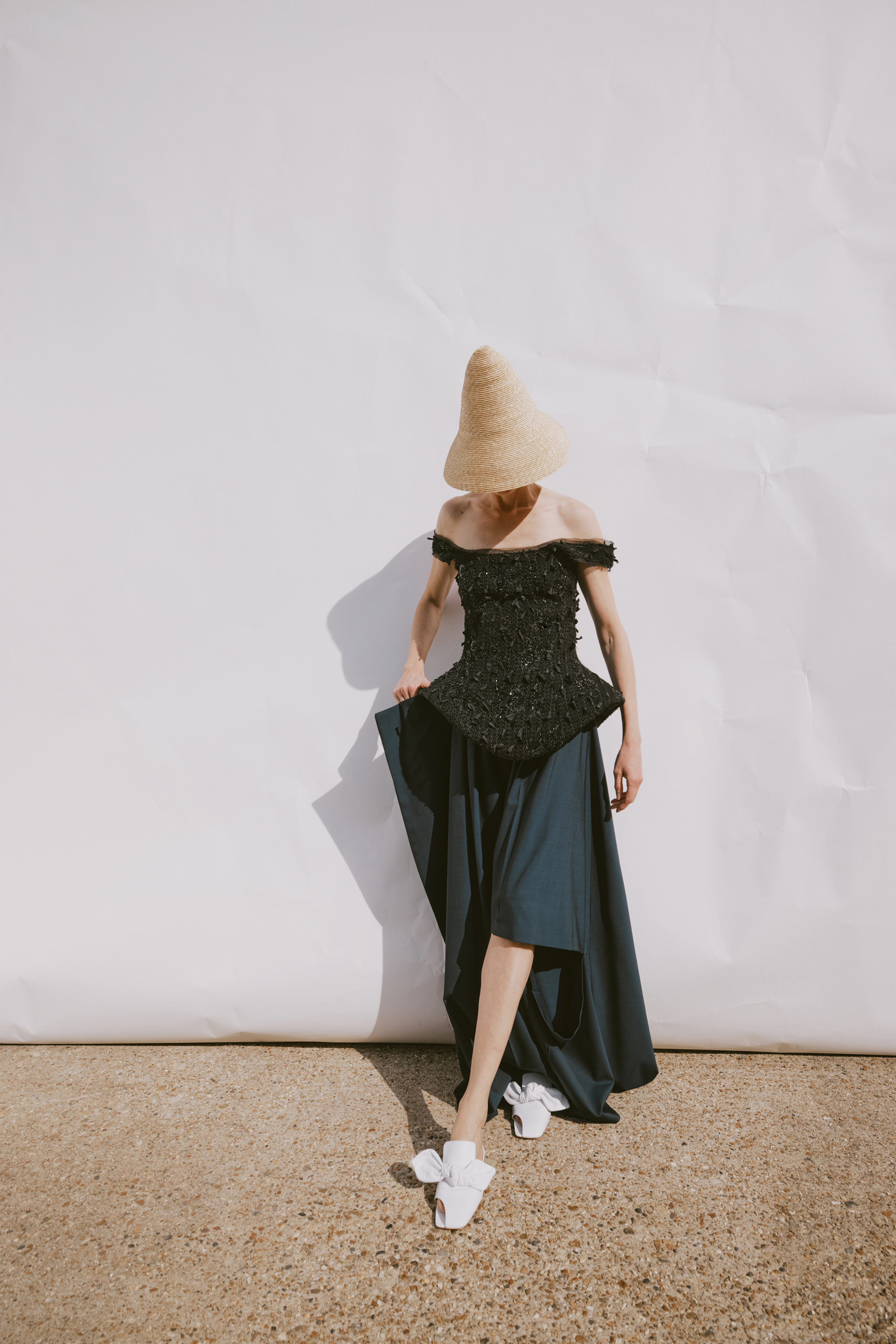 Crisp cottons and airy linens trace the body with subtle twists, folded lines and quiet reveals — construction shown only where it counts. The palette ranges from sun-bleached neutrals to deep indigos and flashes of pink, echoing the season’s rhythm of restraint and release. Textural contrasts and unexpected cutouts lend dimension, while layered panels invite new ways of wear.