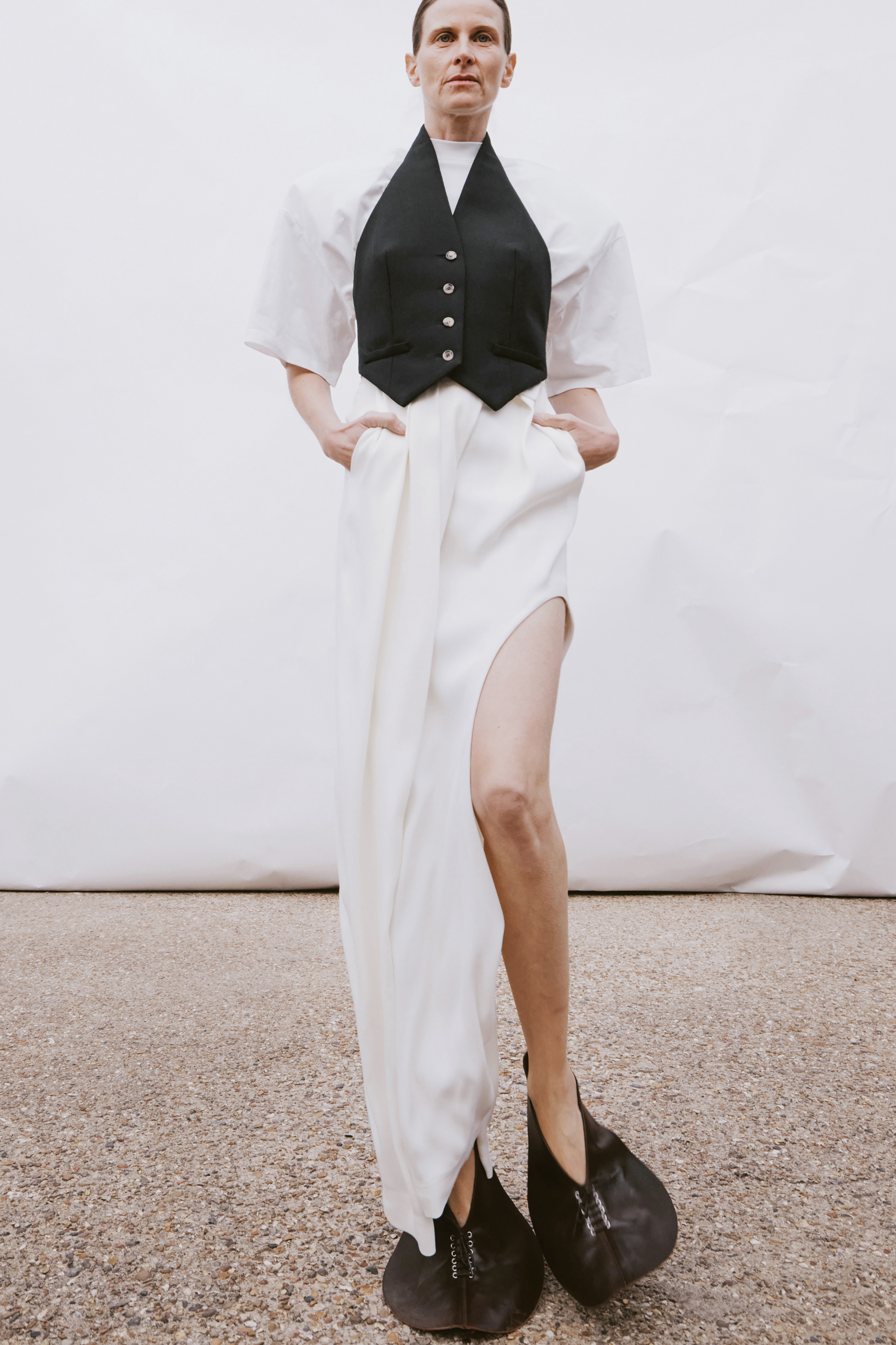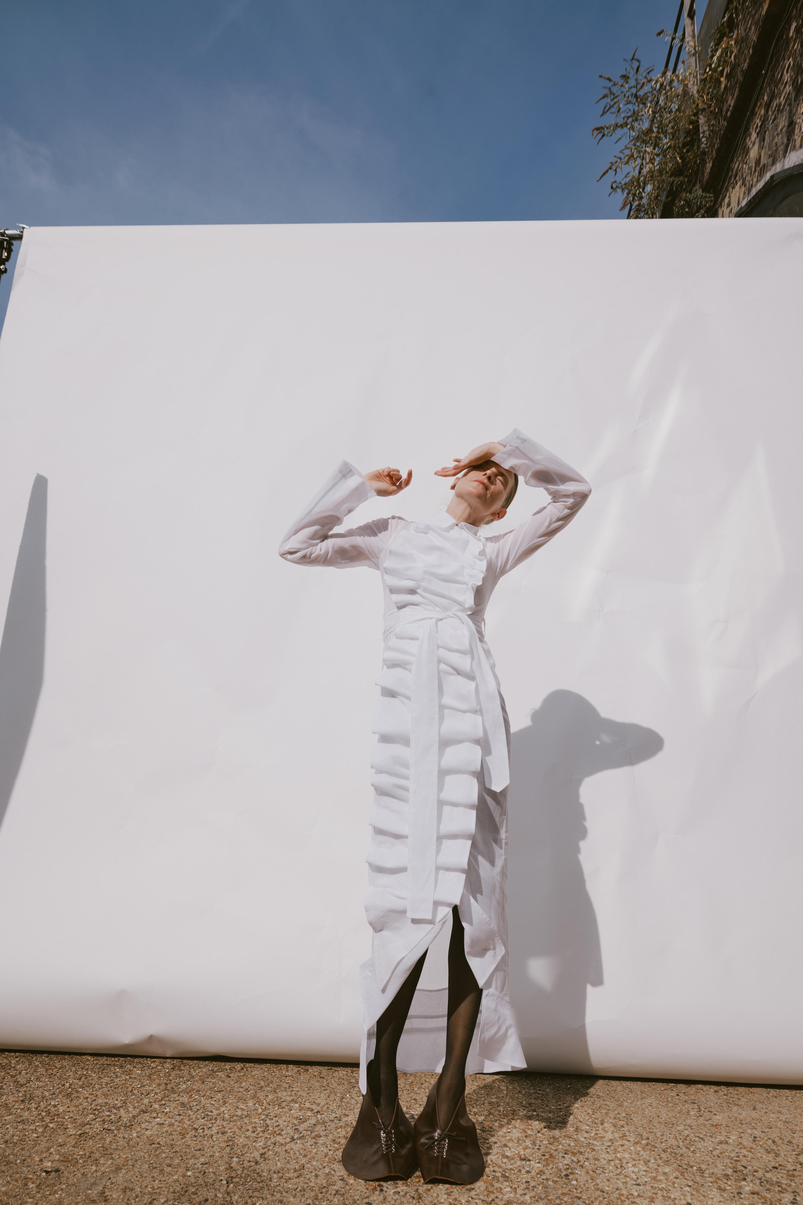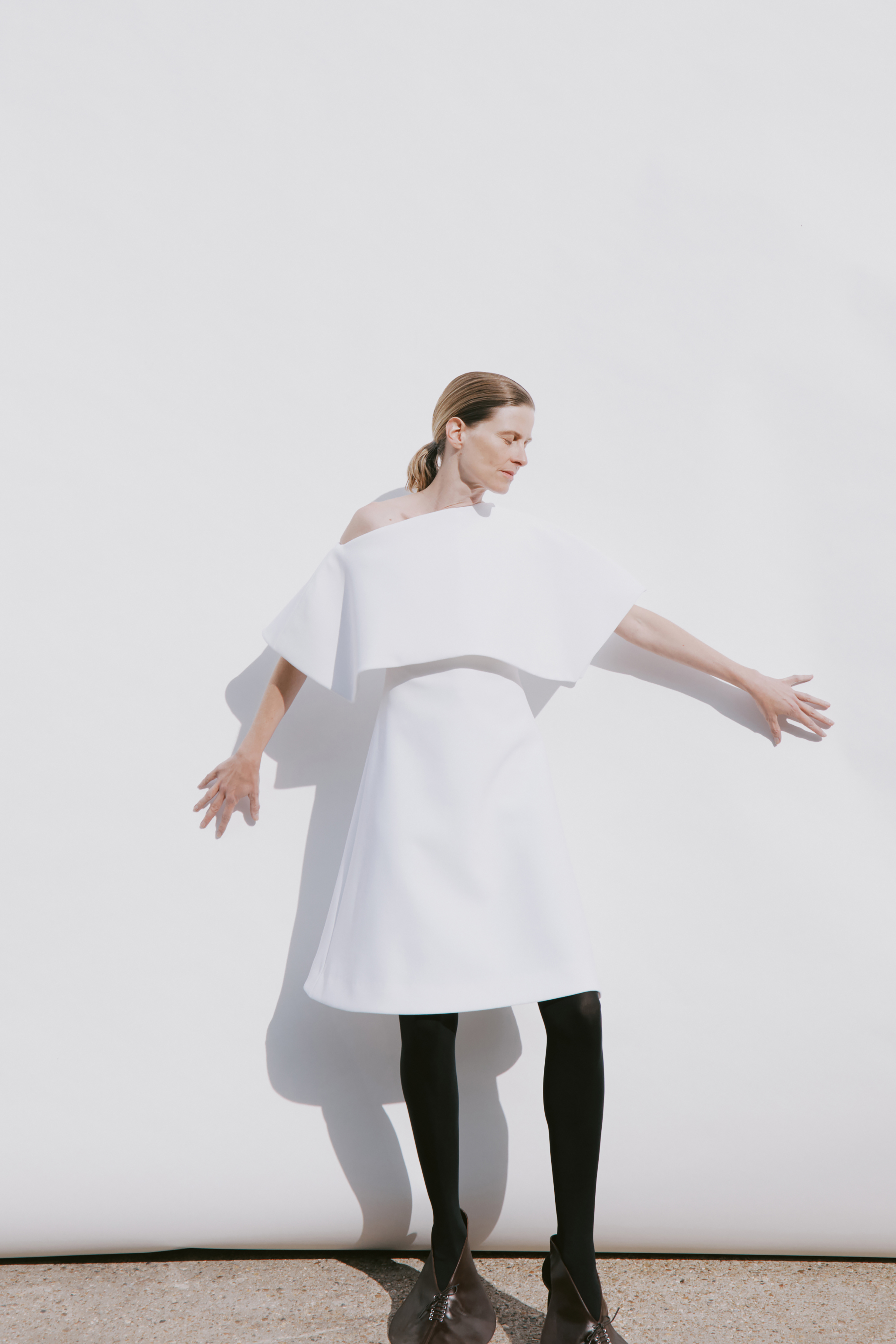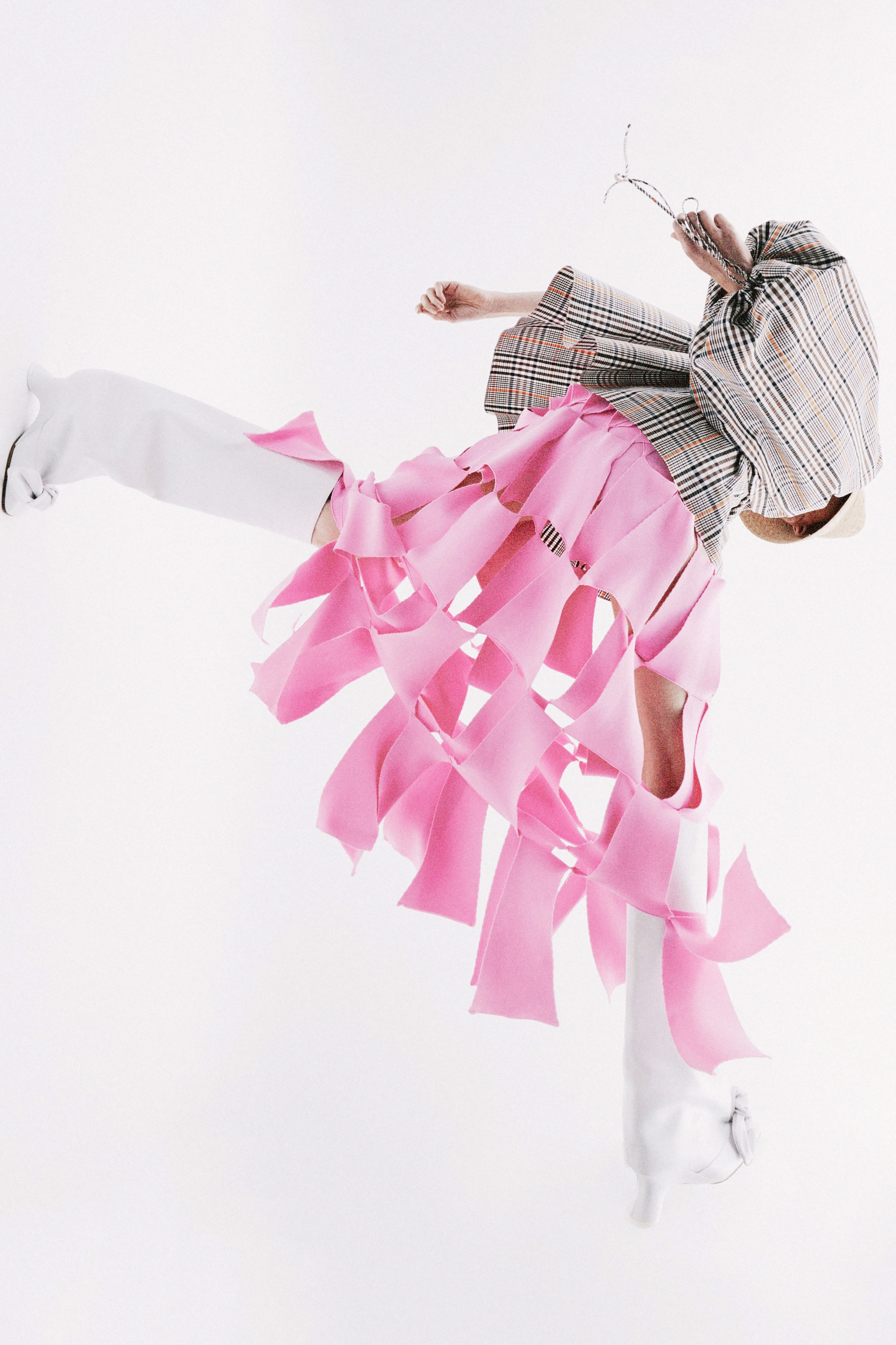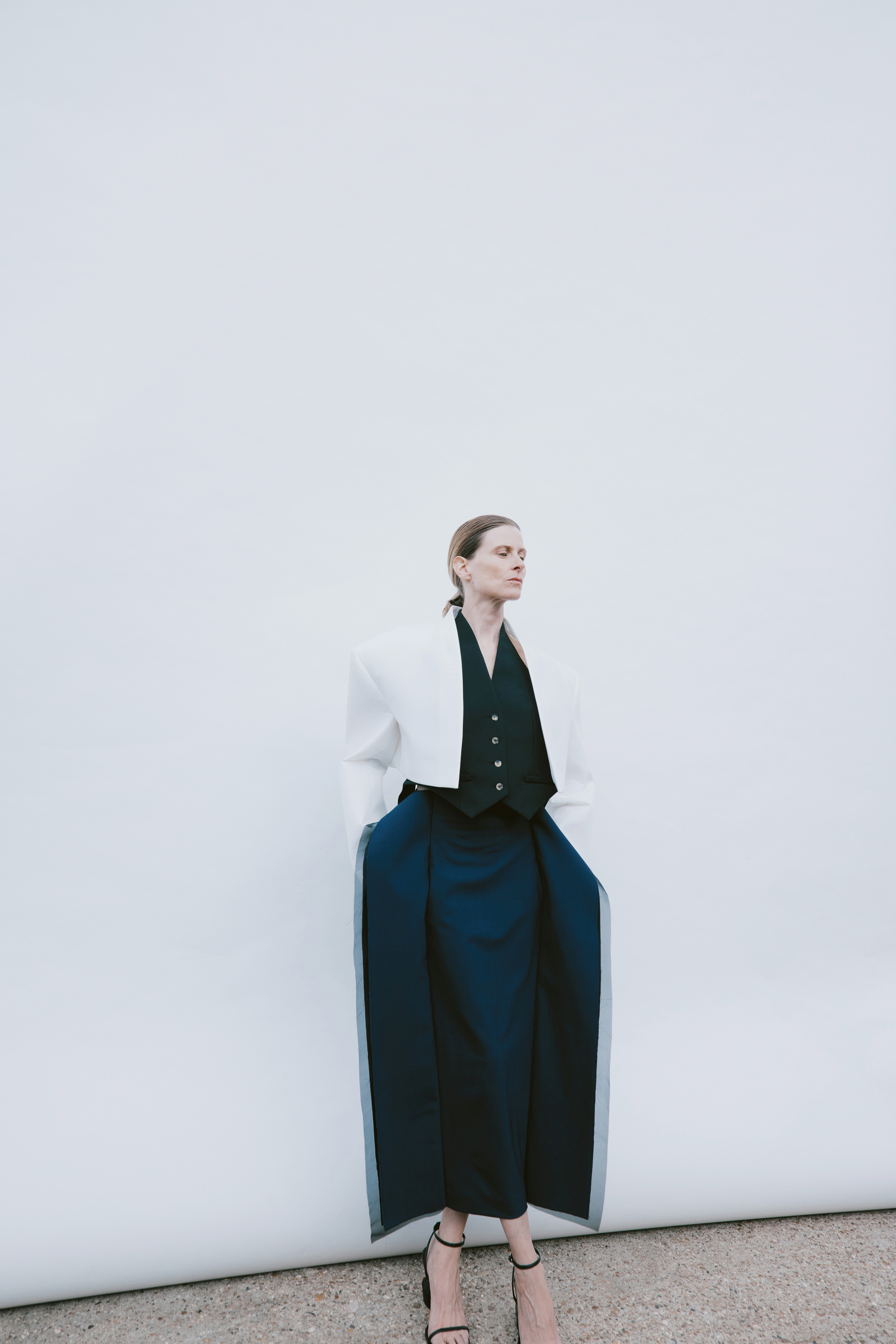 Crisp cottons and airy linens trace the body with subtle twists, folded lines and quiet reveals — construction shown only where it counts. The palette ranges from sun-bleached neutrals to deep indigos and flashes of pink, echoing the season’s rhythm of restraint and release. Textural contrasts and unexpected cutouts lend dimension, while layered panels invite new ways of wear.