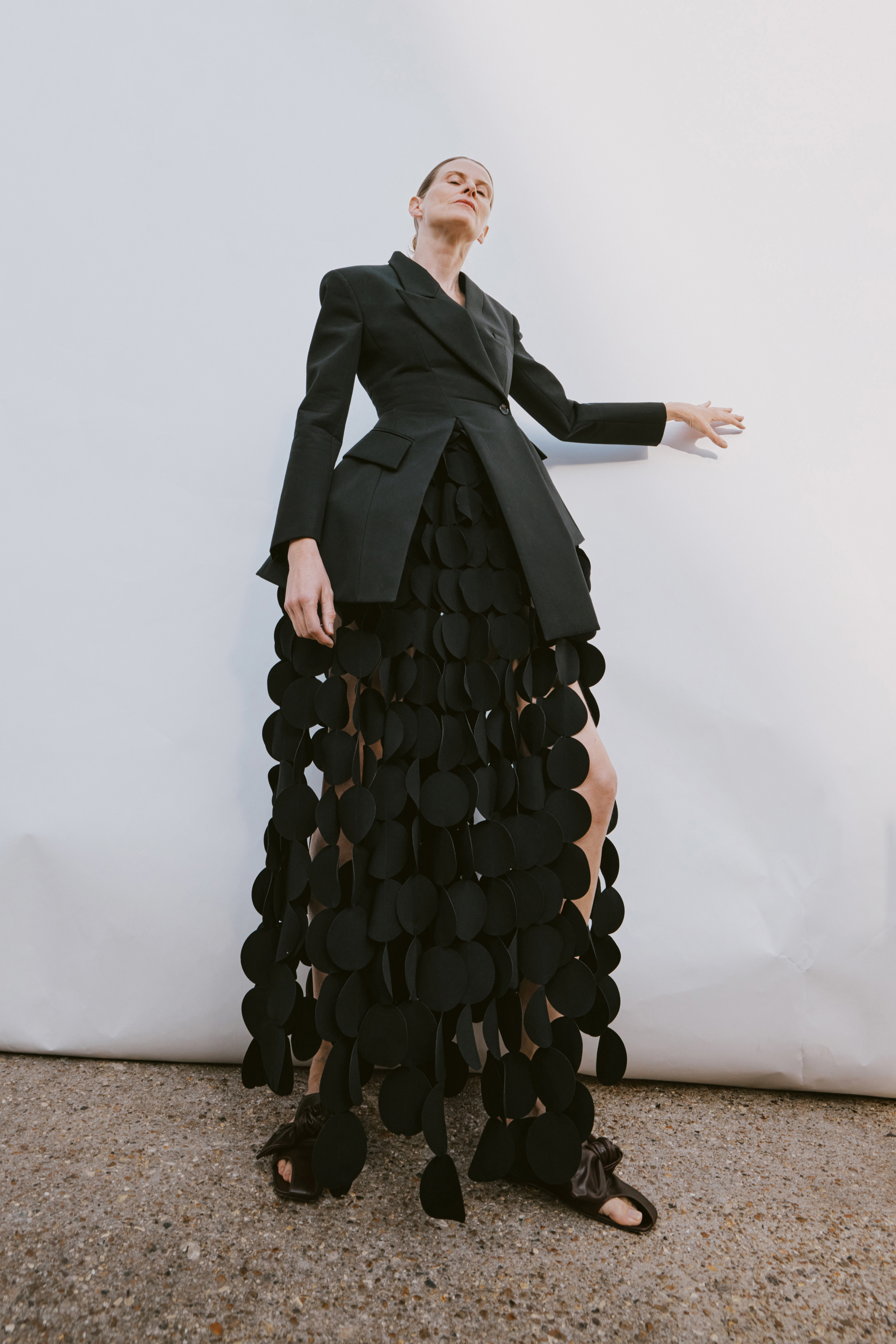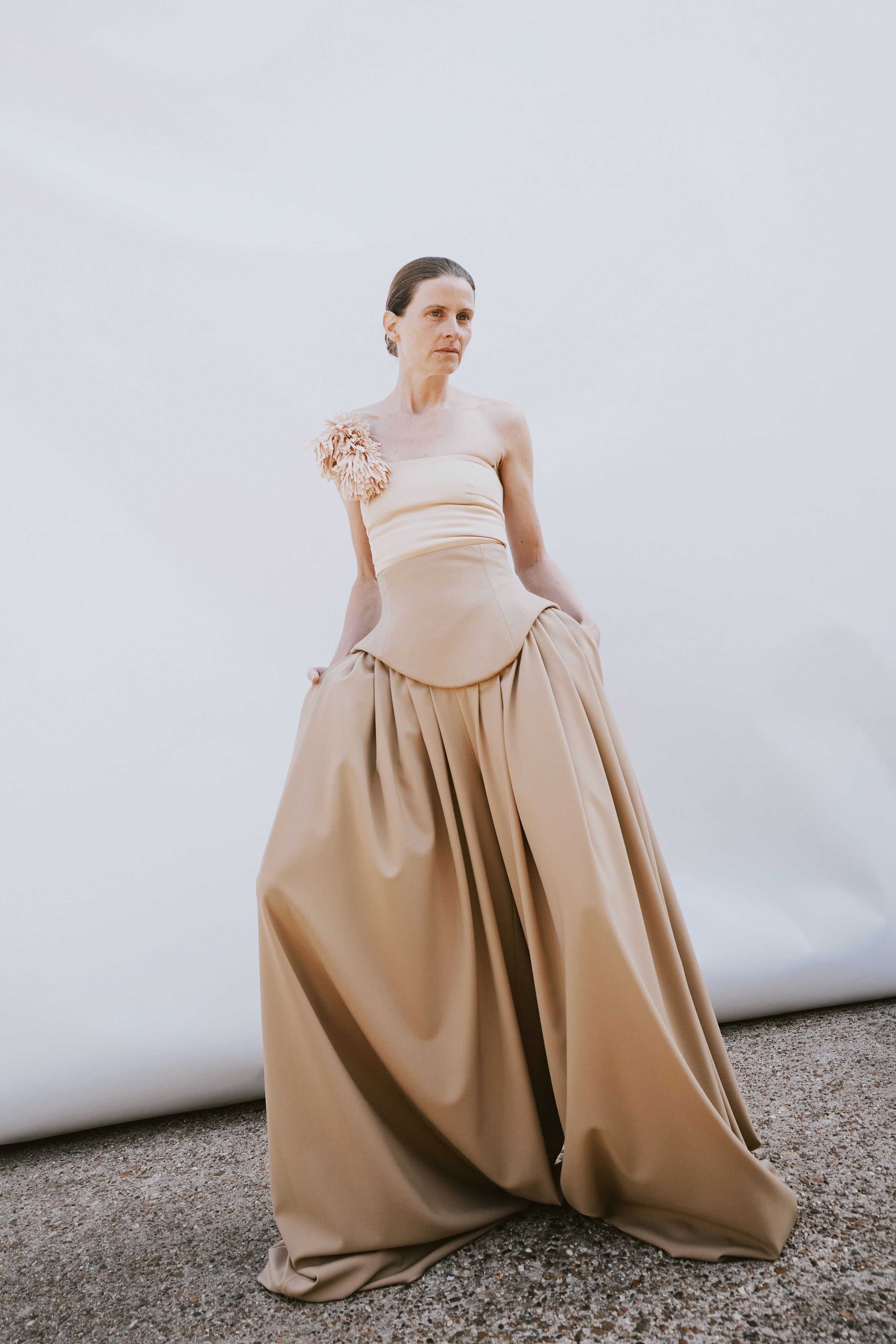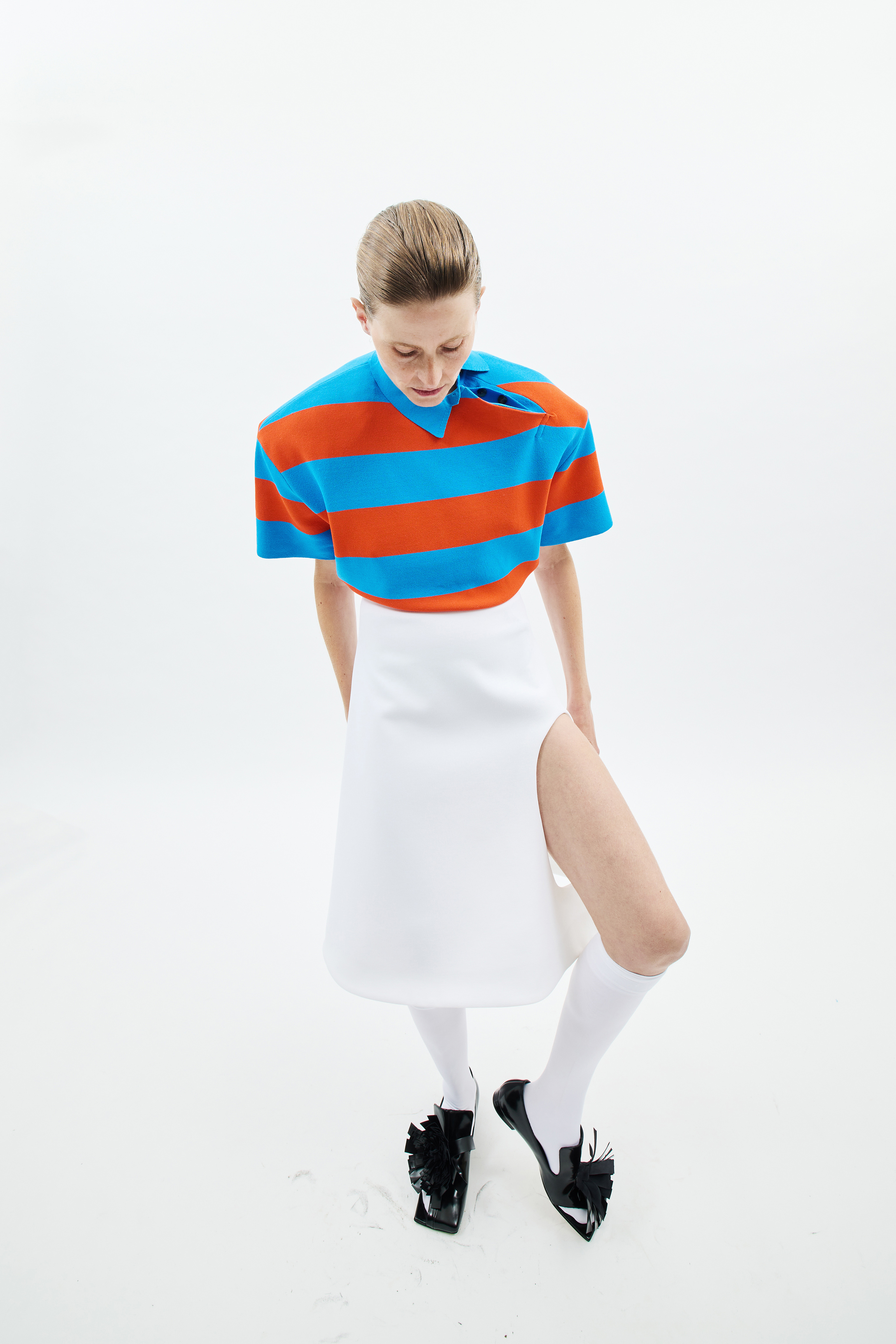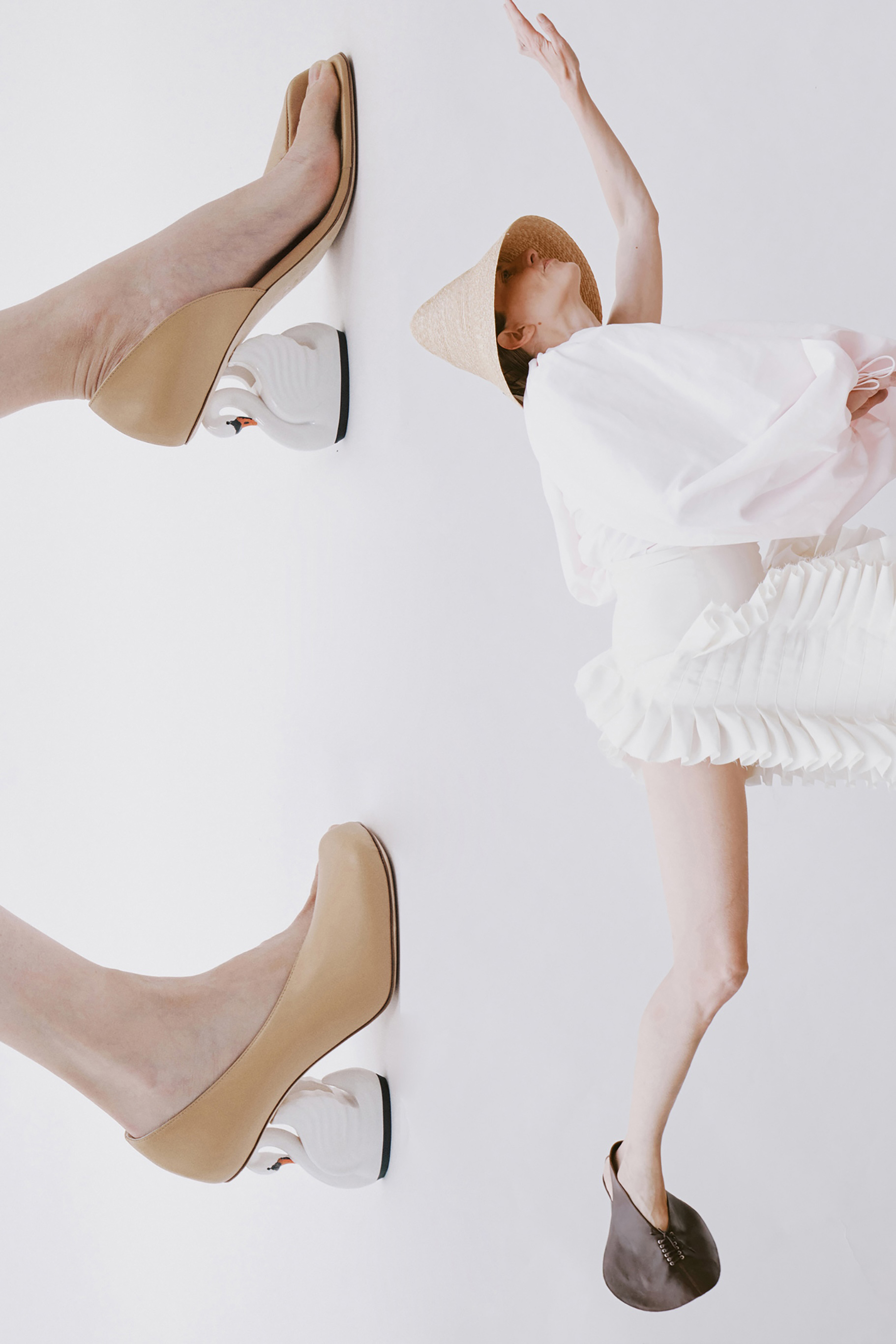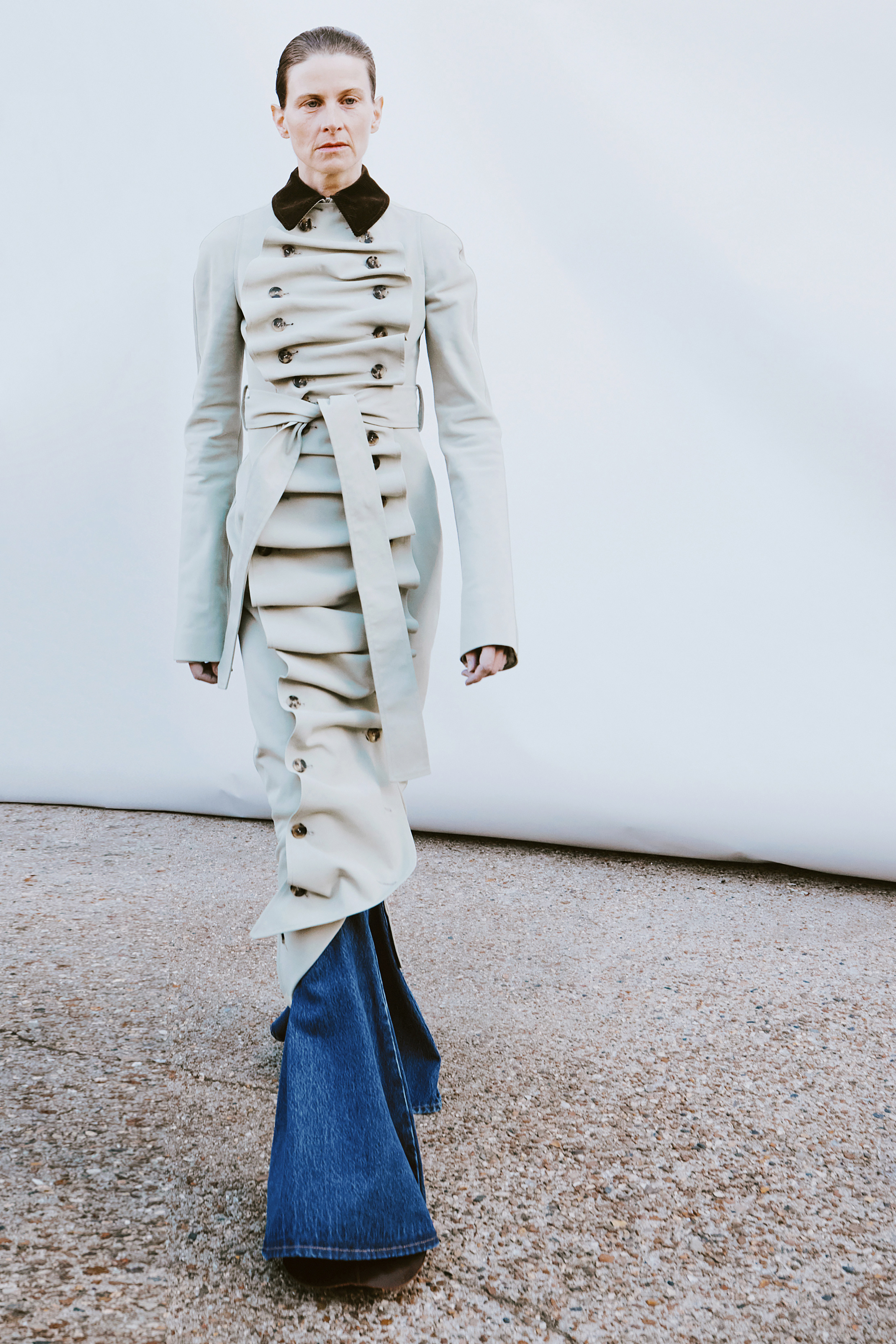 Crisp cottons and airy linens trace the body with subtle twists, folded lines and quiet reveals — construction shown only where it counts. The palette ranges from sun-bleached neutrals to deep indigos and flashes of pink, echoing the season’s rhythm of restraint and release. Textural contrasts and unexpected cutouts lend dimension, while layered panels invite new ways of wear.